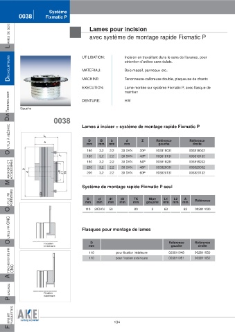 O UTILS À ALÉSAGE L A 1 L 2 Lames à inciser + système de montage rapide Fixmatic P