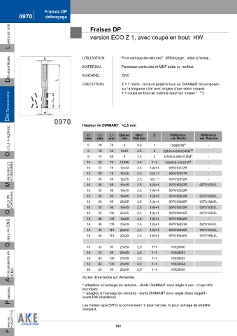 Les fraises type 0970 ne conviennent ni pour rainure, ni pour usinage de stratifié