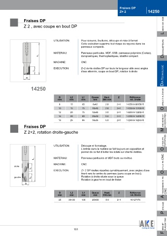 Z= 3 en spirale, avec coupe en bout DP Z 2 , avec coupe en bout DP