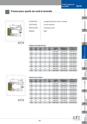UTILISATION: Usinage de quarts de ronds ou arrondis