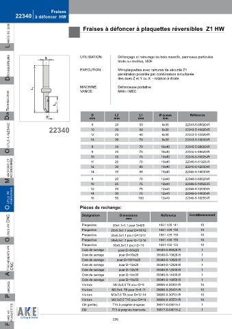 L ames de scie Fraises à défoncer à plaquettes réversibles Z1 HW