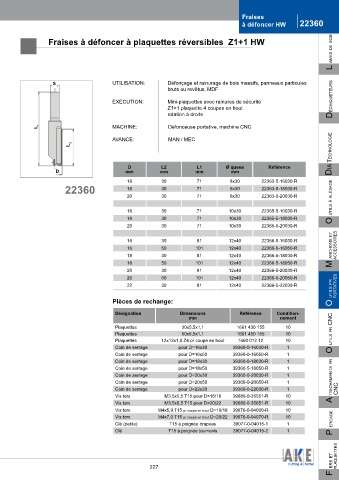 Fraises à défoncer à plaquettes réversibles Z1+1 HW
