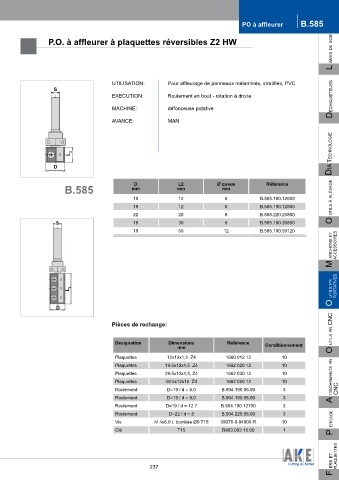 UTILISATION: Pour affleurage de panneaux mélaminés, stratifiés, PVC