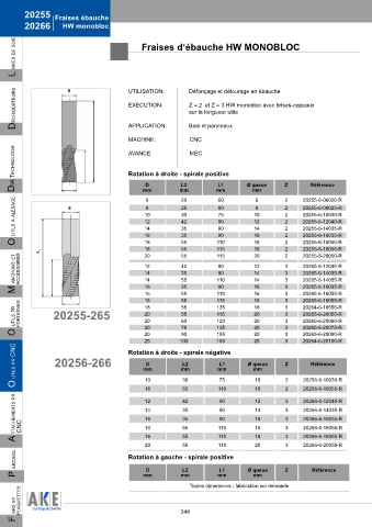 o utiLs pr cnc 20256-266 mm mm mm Ø queue Z Référence