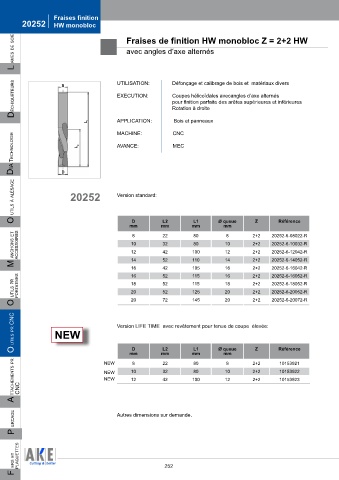 L ames de scie Fraises de finition HW monobloc Z = 2+2 HW