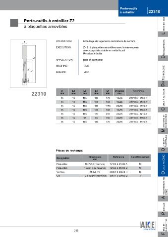 EXECUTION: Z= 2 à plaquettes amovibles avec brises-copeau