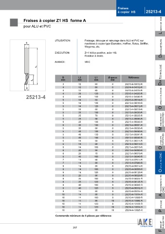UTILISATION: Fraisage, découpe et rainurage dans ALU et PVC sur