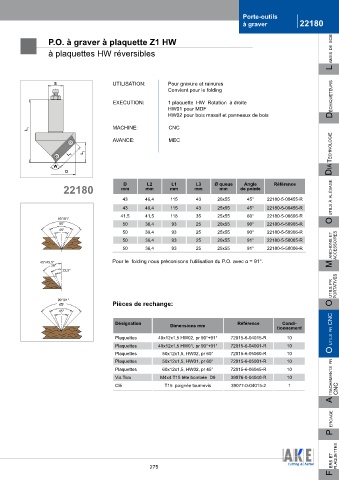 45°/45,5° Pour le folding nous préconisons l‘utilisation du P.O. avec α = 91°.