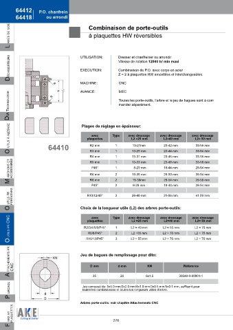 o utiLs à aLésage 64410 Plages de réglage en épaisseur: avec dressage avec dressage