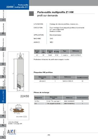 o utiLs pr cnc 22450 Désignation Dimensions Référence Conditionnement