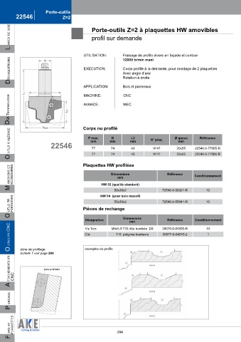 o utiLs à aLésage 22546 Corps nu profilé mm N° plaq. Ø queue 22546-0-77005-R