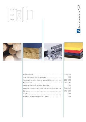 Mandrins HSK................................................................. 302 - 305 A ttachements pr CNC