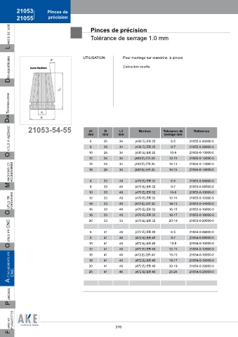 o utiLs à aLésage 21053-54-55 mm mm mm (430 E) ER 25 Tolérance de 21055-0-06000-0