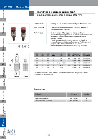 L ames de scie Mandrins de serrage rapide SSA