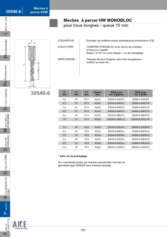 o utiLs à aLésage 30540-6 mm mm mm Queue 30540-6-03020-L 30540-6-04027-R