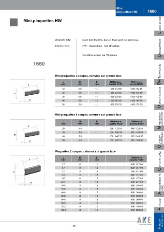 Mini-plaquettes 2 coupes, rainures sur grande face