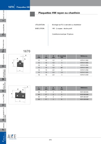 o utiLs à aLésage H R R E mm mm mm R / chanfrein 1670 012 002