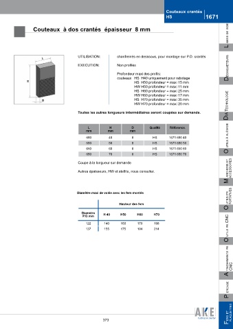 Autres épaisseurs, HW et stellite, nous consulter. accessoires