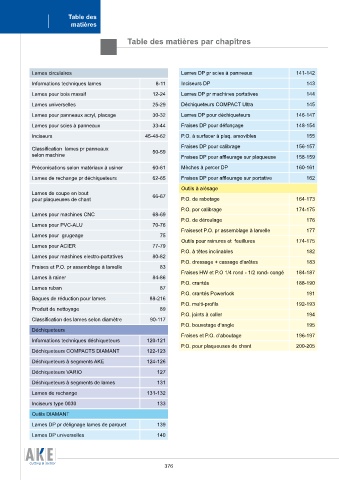 Table des matières par chapîtres