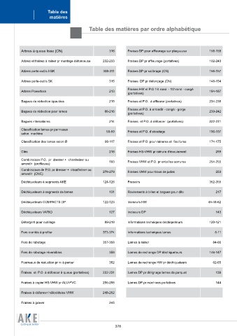 Classification lames pr panneaux 50-59 Fraises et P.O. d‘aboutage 196-197