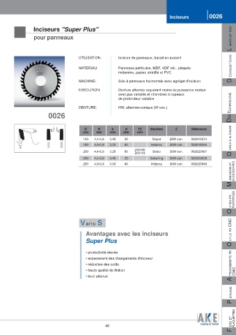 UTILISATION: Incision de panneaux, travail en avalant