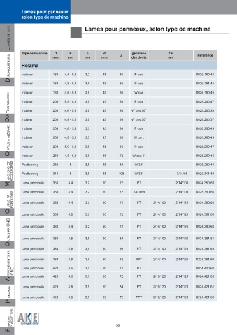 L AMES DE SCIE Lames pour panneaux, selon type de machine