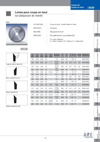 UTILISATION: Coupe en bout , chanfreinage du chant