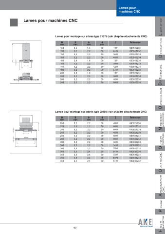 Lames pour montage sur arbres type 21079 (voir chapître attachements CNC)