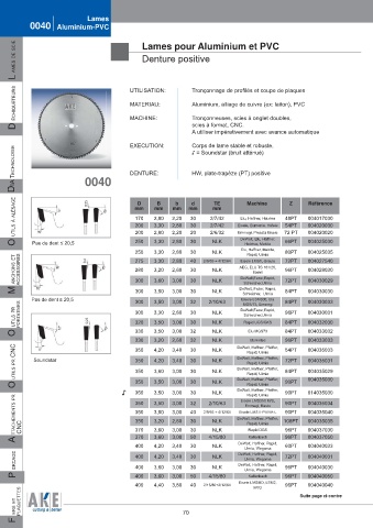L AMES DE SCIE Lames pour Aluminium et PVC