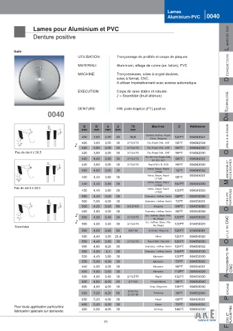 Lames pour Aluminium et PVC