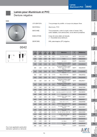 Lames pour Aluminium et PVC