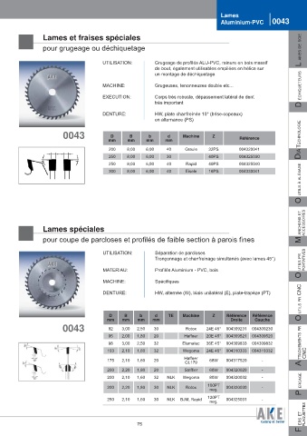 UTILISATION: Grugeage de profi lés ALU-PVC, rainure en bois massif