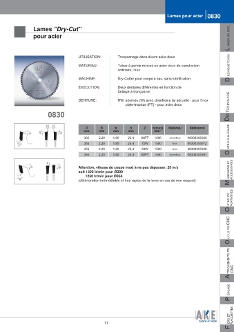 Attention, vitesse de coupe maxi à ne pas dépasser: 25 m/s