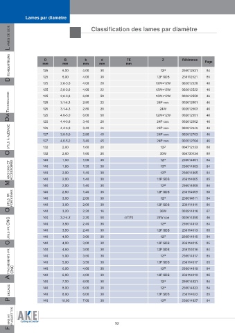 L AMES DE SCIE Classifi cation des lames par diamètre