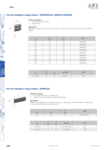 Fers de rabotage à usage unique - CENTROLOCK, WEINIG CARBURE