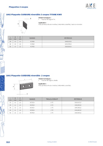 1662 Plaquette CARBURE réversible 2 coupes TITANE KWO
