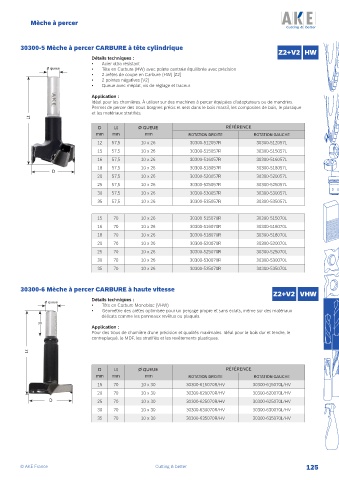 Ø queue • Tête en Carbure (HW) avec pointe centrale équilibrée avec précision