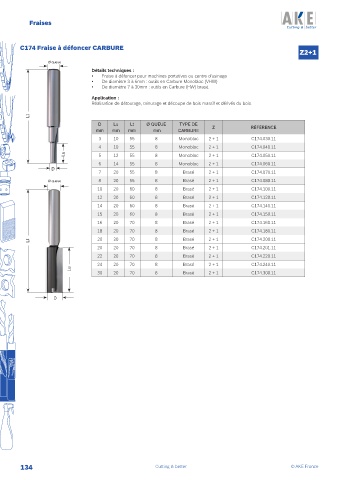 • Fraise à défoncer pour machines portatives ou centre d’usinage