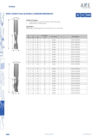 20257, 20260 Fraise de finition CARBURE MONOBLOC