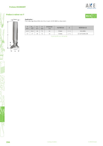 Pour rainurage de profilés aluminium type LMC® 5808 ou équivalent.