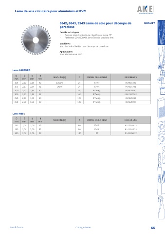 0042, 0043, 9143 Lame de scie pour découpe de QUALITY