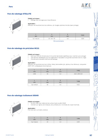 L • Acier avec 12% de chrome pour le travail de bois tendre (spécifique pour machine avec jointage)