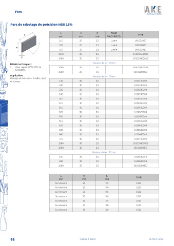 • Acier rapide HSS 18% de 1080 25 2,5 161010802525